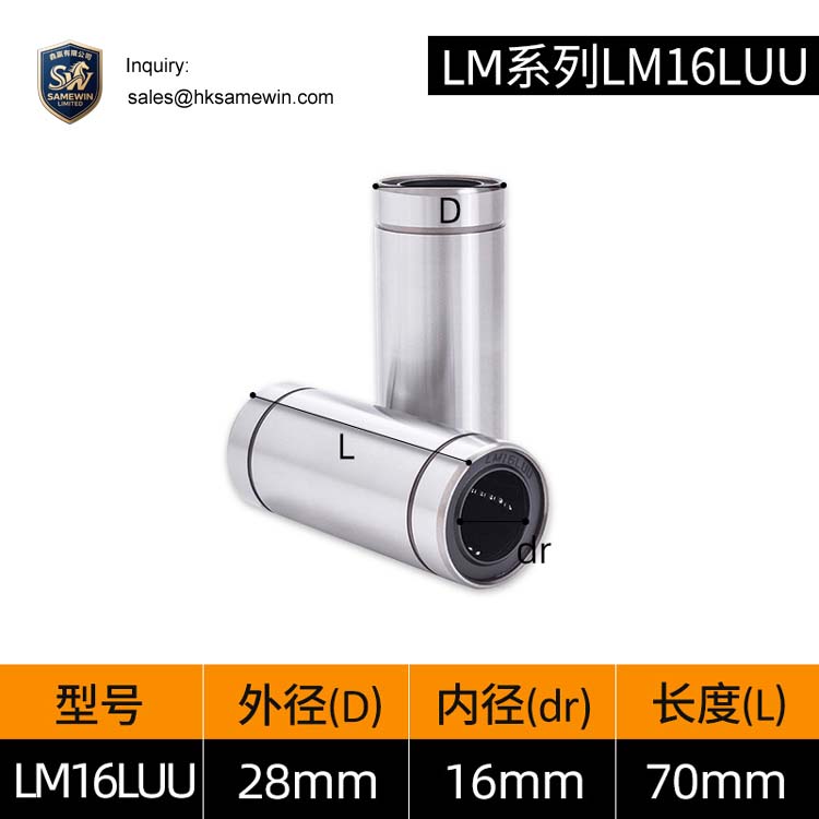 S100154 LM16LUU Straight tube bearings LM series extended sliding linear bearing LM16LUU 16*28*70mm US$1.50