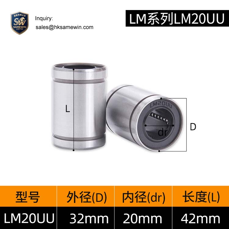 S100155 LM20UU Straight tube bearings LM series extended sliding linear bearing LM20UU 20*32*42mm US$0.66