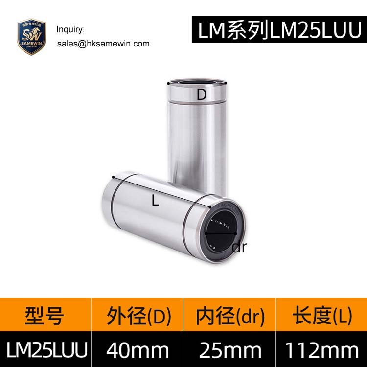 S100158 LM25LUU Straight tube bearings LM series extended sliding linear bearing LM25LUU 25*40*112mm US$2.64