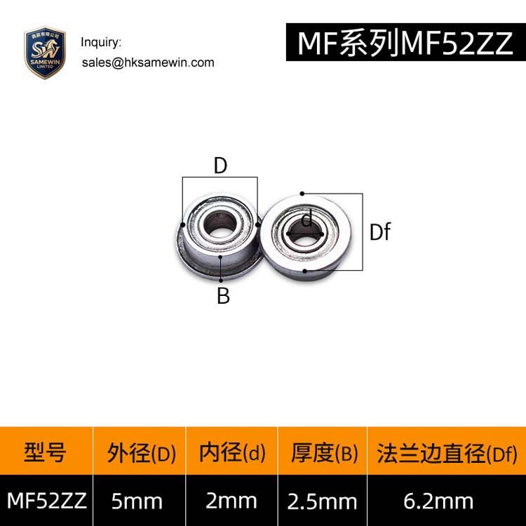 S100169 MF52zz flange bearing with edge step micro deep groove ball bearing flange bearing MF52zz 2*5*2.5*6.2mm US$0.37
