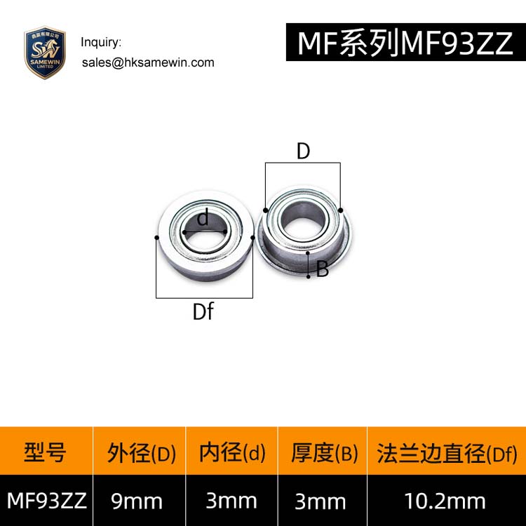 S100176 MF93zz flange bearing with edge step micro deep groove ball bearing flange bearing MF93zz 3*9*3*10.2mm US$0.32