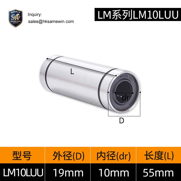 | S100148 | LM10LUU Straight tube bearings LM series extended sliding linear bearing LM10LUU 10*19*55mm | ![]() |