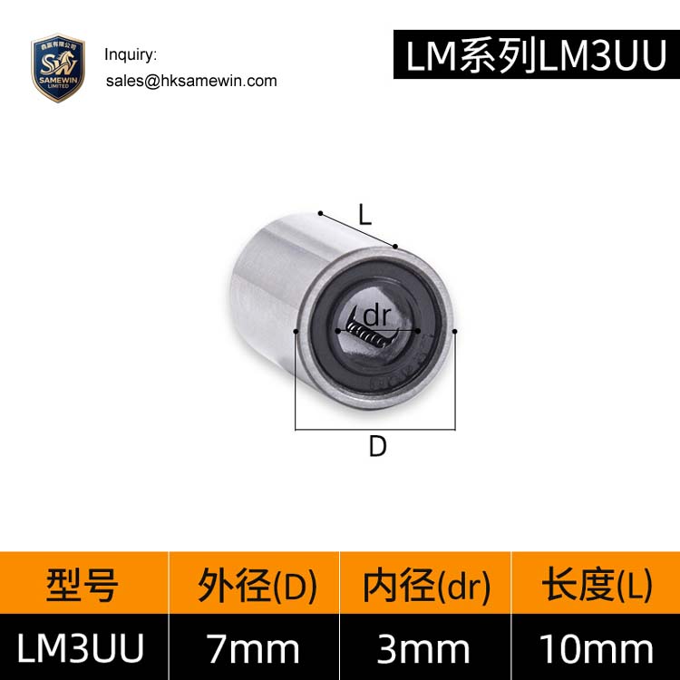 S100140 LM3UU Straight tube bearings LM series extended sliding linear bearing LM3UU 3*7*10mm US$0.76