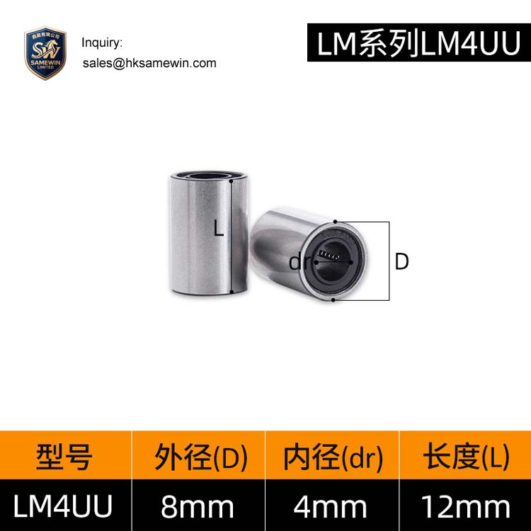 S100141 LM4UU Straight tube bearings LM series extended sliding linear bearing LM4UU 4*8*12mm US$0.76