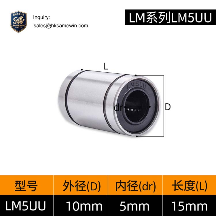 S100142 LM5UU Straight tube bearings LM series extended sliding linear bearing LM5UU 5*10*15mm US$0.56
