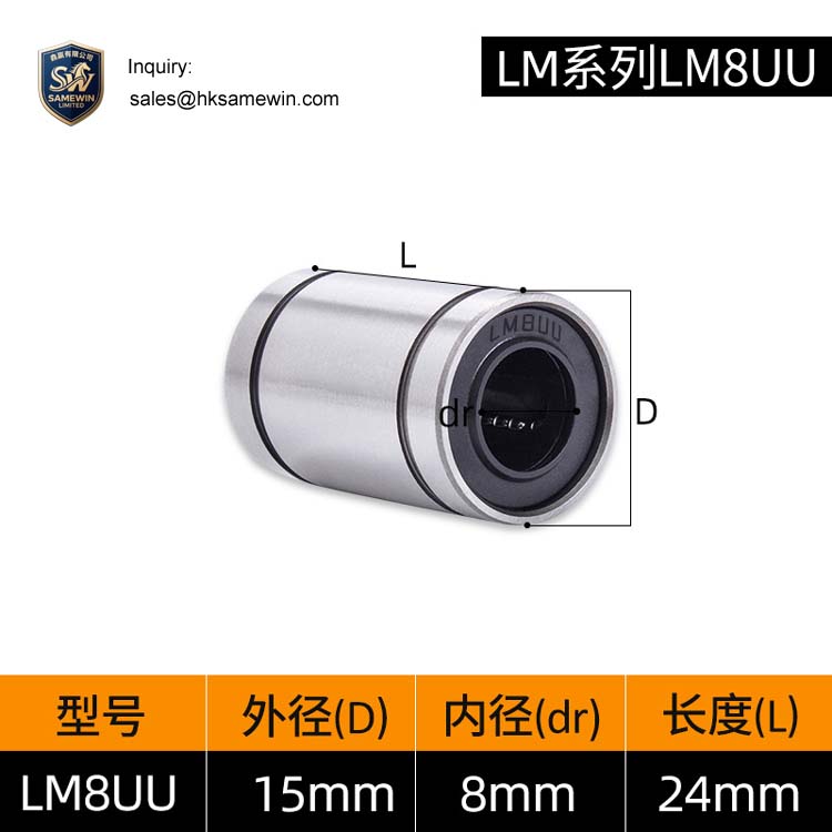 S100145 LM8UU Straight tube bearings LM series extended sliding linear bearing LM8UU 8*15*24mm US$0.29