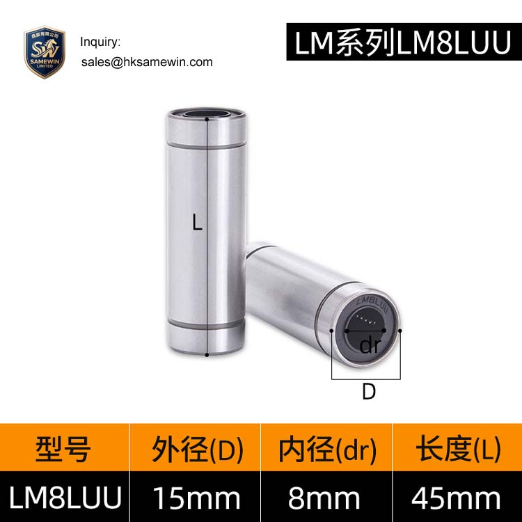 S100146 LM8LUU Straight tube bearings LM series extended sliding linear bearing LM8LUU 8*15*45mm US$0.69